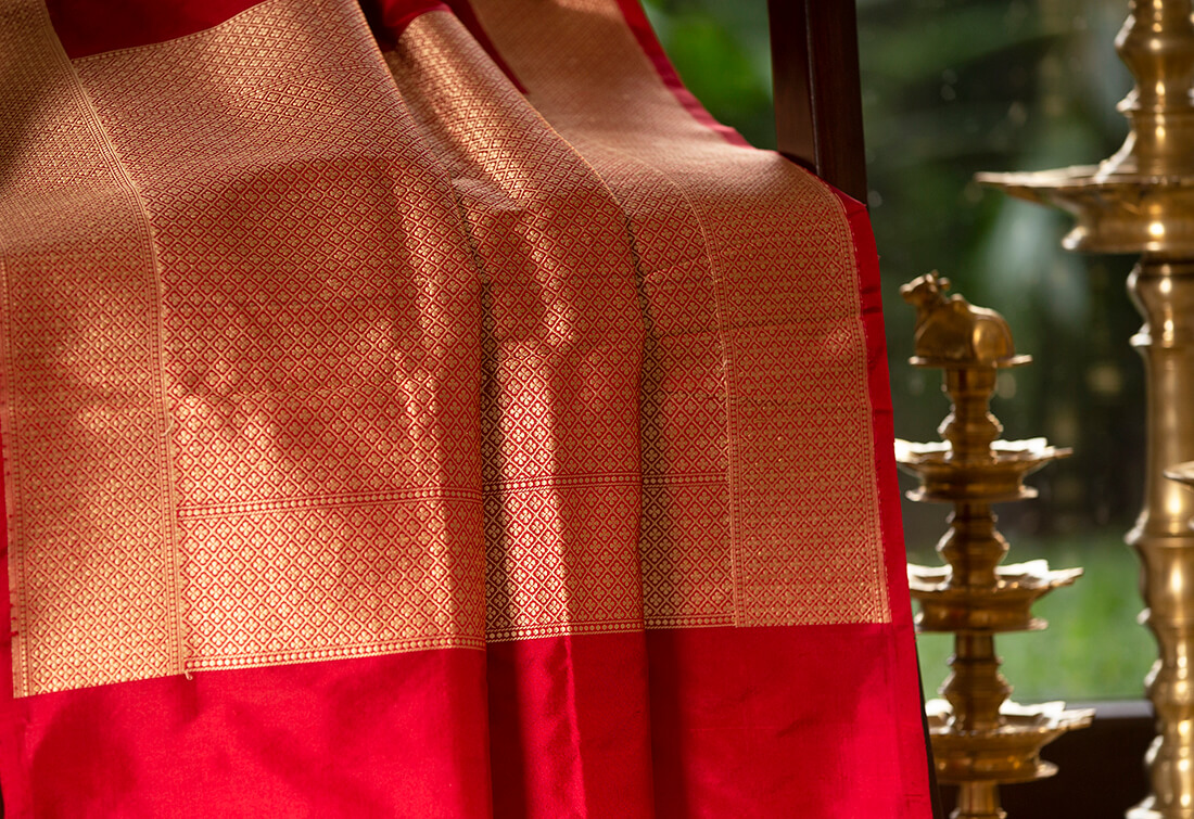 Technique: Katan is a hand woven fabric using pure silk threads. Two twisted together as one, are used in both the warp as well as the weft.